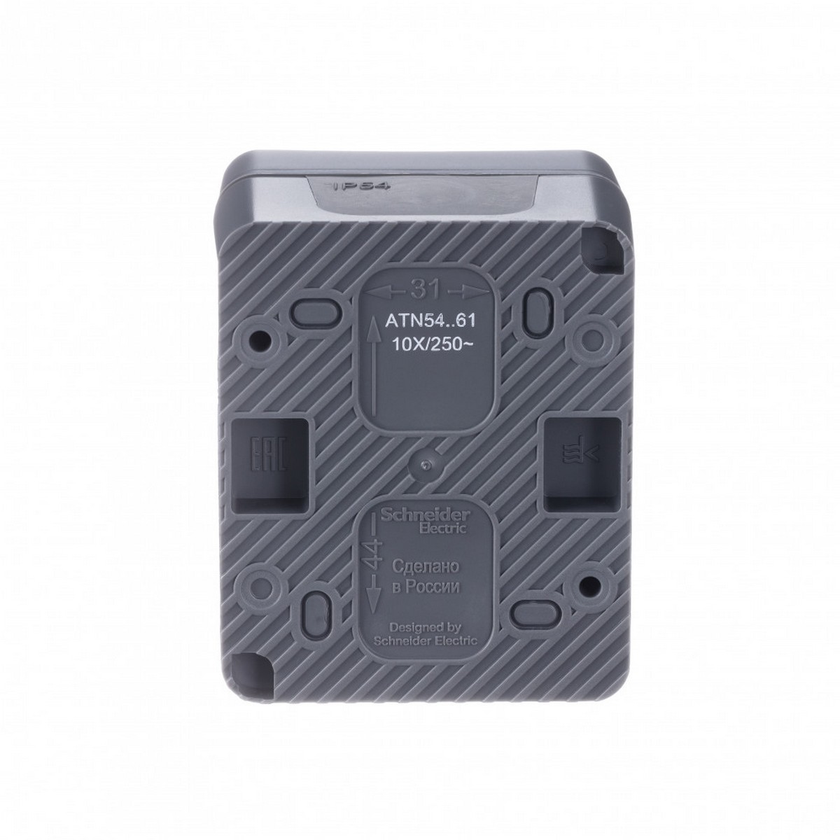 Переключатель 1-клавишный для открытого монтажа. Степень защиты IP:54, Степень защиты IK: IK08. Продукция AtlasDesign Profi54 созданы специально для т