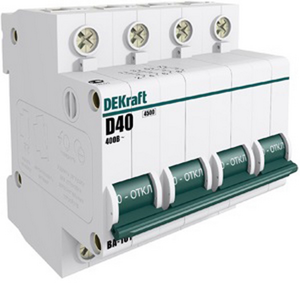Автоматический выключатель Dekraft 4Р 25А х-ка D ВА-101 4,5кА 11140DEK по цене 1 629 руб. с фотографией и техническими характеристиками. Для покупки товара нажмите кнопку "Купить" и перейдите в корзину или позвоните по телефону 8 (495) 585 32 60 или 8 (800) 222 23 53.
