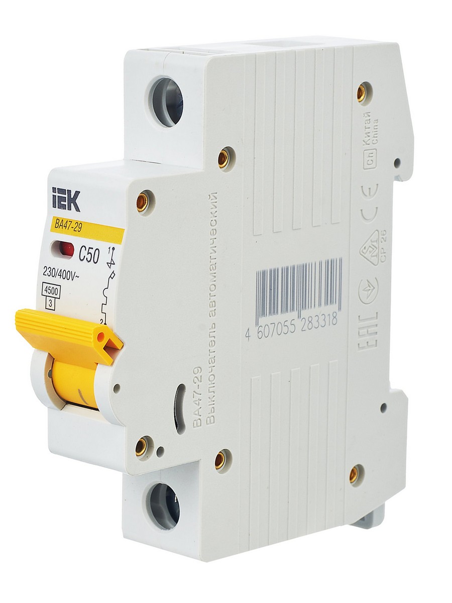 **Автоматический выключатель IEK KARAT ВА47-29 1Р 50А 4,5кА (артикул: MVA20-1-050-C)**