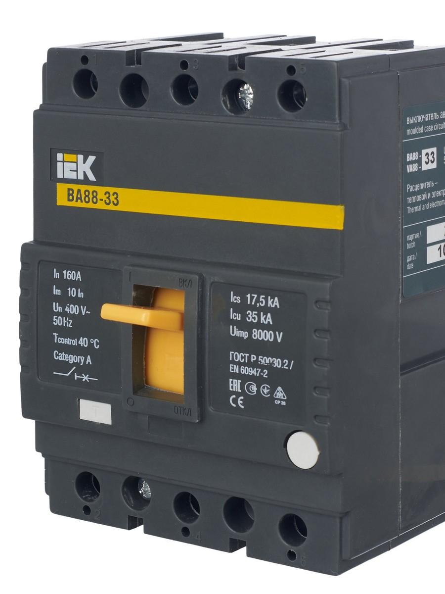 Автоматический выключатель IEK KARAT ВА88-33 3Р 160А 35кА SVA20-3-0160 по цене 5 056 руб. с фотографией и техническими характеристиками. Для покупки товара нажмите кнопку "Купить" и перейдите в корзину или позвоните по телефону 8 (495) 585 32 60 или 8 (800) 222 23 53.