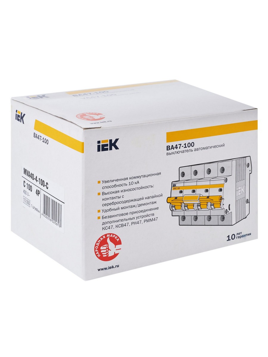 Автоматический выключатель IEK KARAT ВА 47-100 4Р 100А 10 кА х-ка С MVA40-4-100-C по цене 3 356 руб. с фотографией и техническими характеристиками. Для покупки товара нажмите кнопку "Купить" и перейдите в корзину или позвоните по телефону 8 (495) 585 32 60 или 8 (800) 222 23 53.