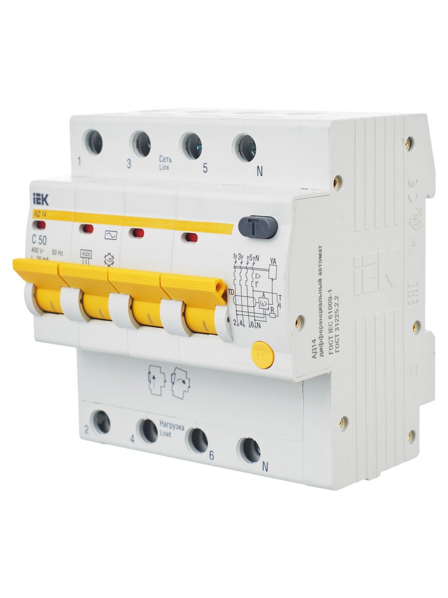 **Дифференциальный автоматический выключатель IEK KARAT АД14 4P 50А 30мА MAD10-4-050-C-030**
