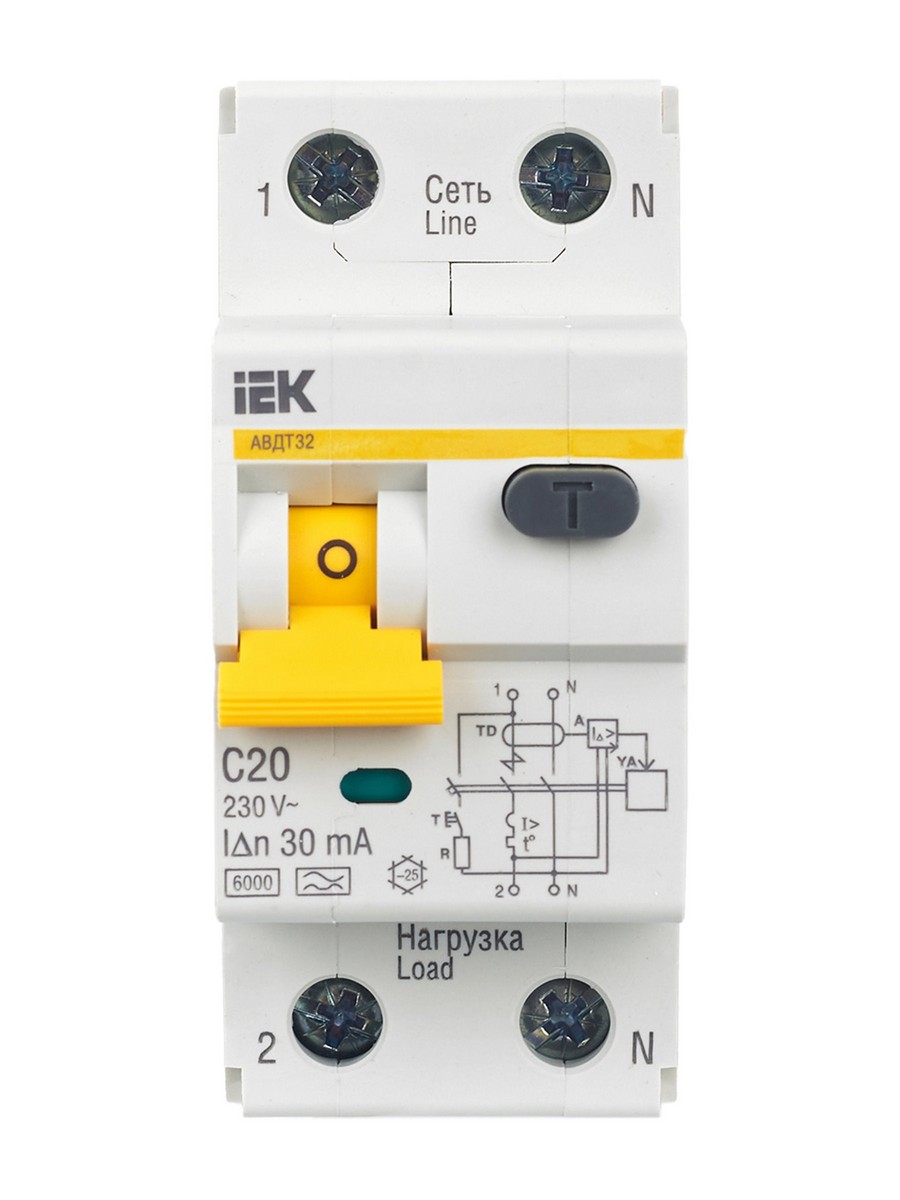 Дифференциальный автоматический выключатель IEK KARAT АВДТ32 2P 20A обеспечивает надежную защиту от короткого замыкания, перегрева и тока утечки. С номинальным током 20A и максимальным током отключения 6kA, он идеально подходит для защиты электрических цепей. Ток утечки 30mA гарантирует безопасность, а полностью медные расцепители и пламягасители обеспечивают высокую надежность. Крепления и механизмы выполнены из качественного пластика, что увеличивает срок службы устройства.