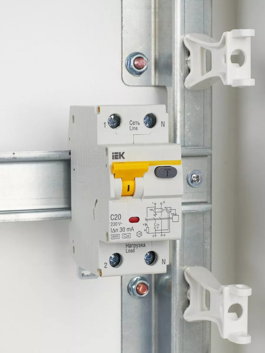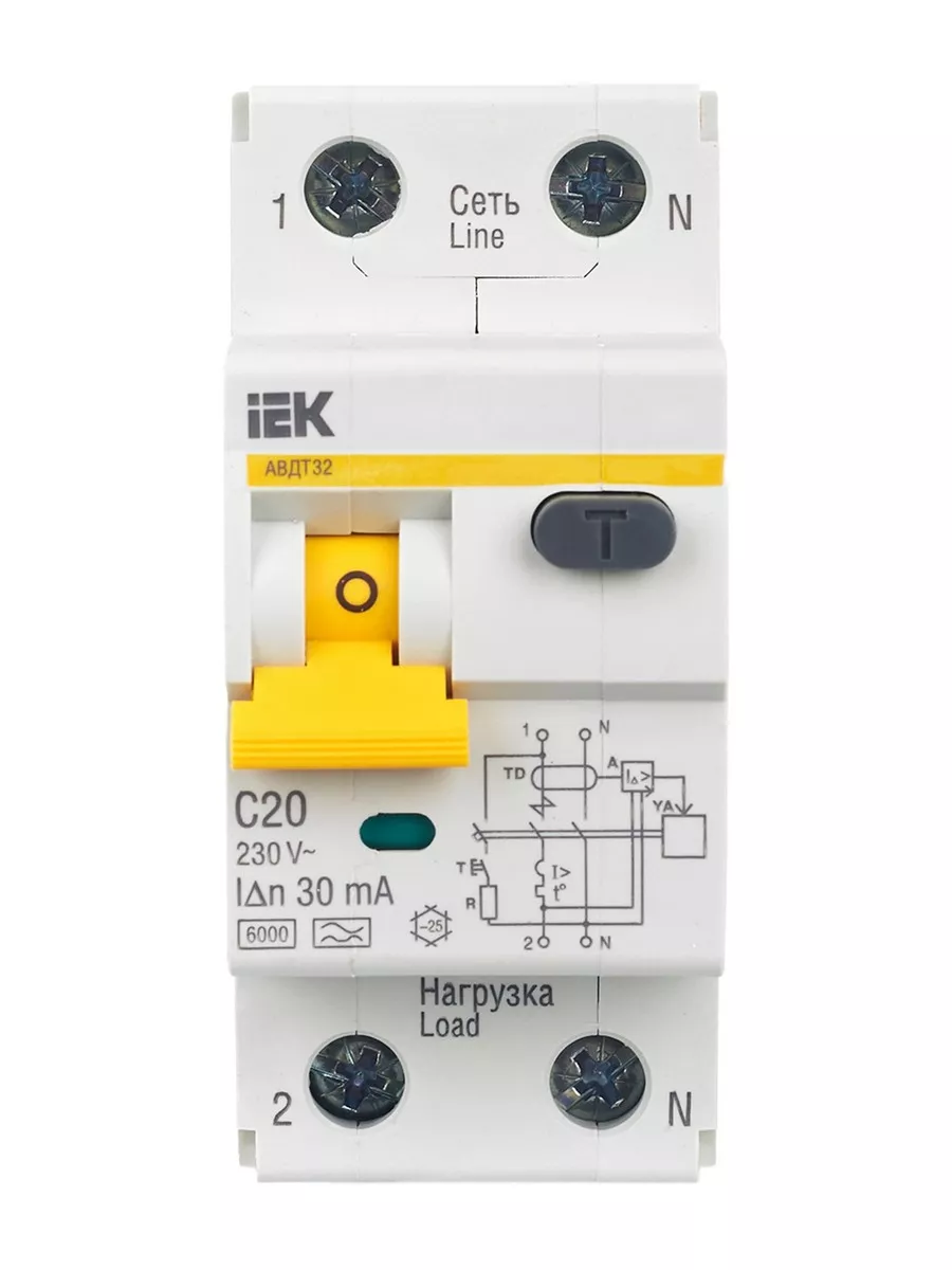 Дифференциальный автоматический выключатель IEK KARAT АВДТ32 2P 20A обеспечивает надежную защиту от короткого замыкания, перегрева и тока утечки. С номинальным током 20A и максимальным током отключения 6kA, он идеально подходит для защиты электрических цепей. Ток утечки 30mA гарантирует безопасность, а полностью медные расцепители и пламягасители обеспечивают высокую надежность. Крепления и механизмы выполнены из качественного пластика, что увеличивает срок службы устройства.