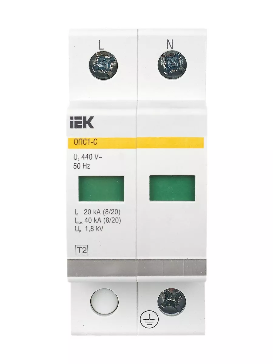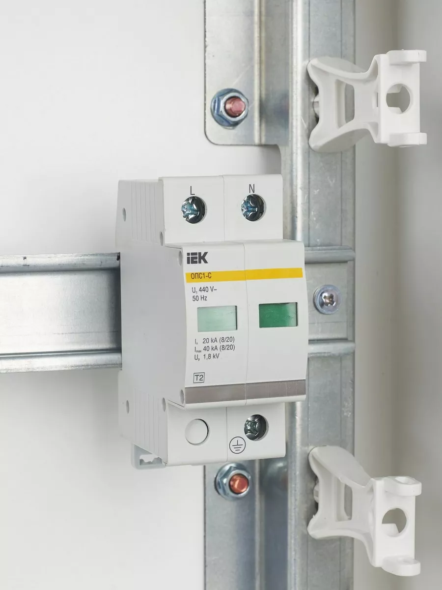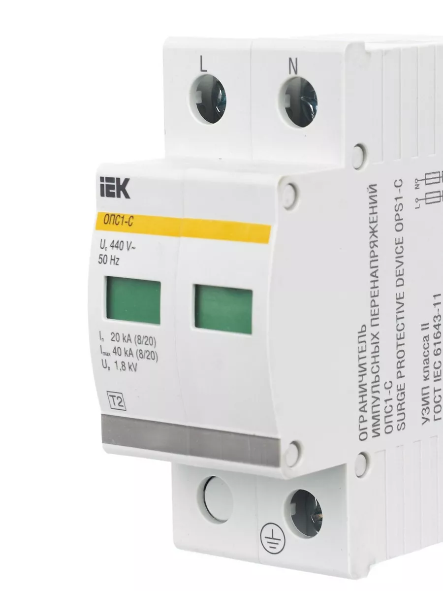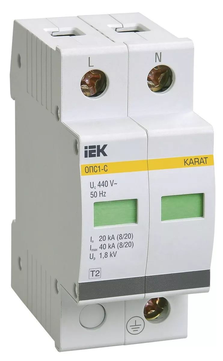 **Ограничитель перенапряжения IEK KARAT (УЗИП) ОПС1-C 2Р MOP20-2-C** — надежное решение для защиты ваших электрических систем. С номинальным током в 20 кА и максимальным импульсным током 40 кА, данный УЗИП эффективно предотвращает повреждения от грозовых и коммутационных перенапряжений.