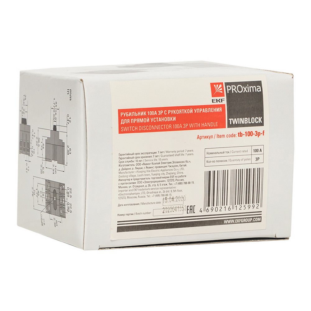 Рубильник EKF PROxima 100A 3P c рукояткой управления для прямой установки TwinBlock tb-100-3p-f по цене 6 603 руб. с фотографией и техническими характеристиками. Для покупки товара нажмите кнопку "Купить" и перейдите в корзину или позвоните по телефону 8 (495) 585 32 60 или 8 (800) 222 23 53.