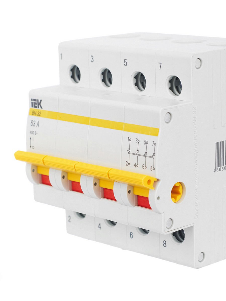 Выключатель нагрузки IEK KARAT (мини-рубильник) ВН-32 4Р 63А MNV10-4-063 по цене 1 047 руб. с фотографией и техническими характеристиками. Для покупки товара нажмите кнопку "Купить" и перейдите в корзину или позвоните по телефону 8 (495) 585 32 60 или 8 (800) 222 23 53.