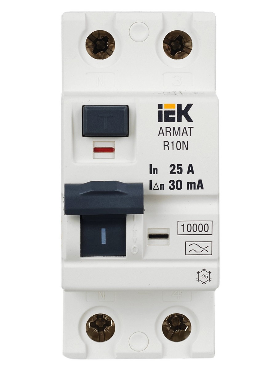 ВДТ УЗО IEK ARMAT R10N 2P 25А 30мА тип A AR-R10N-2-025A030 по цене 3 578 руб. с фотографией и техническими характеристиками. Для покупки товара нажмите кнопку "Купить" и перейдите в корзину или позвоните по телефону 8 (495) 585 32 60 или 8 (800) 222 23 53.