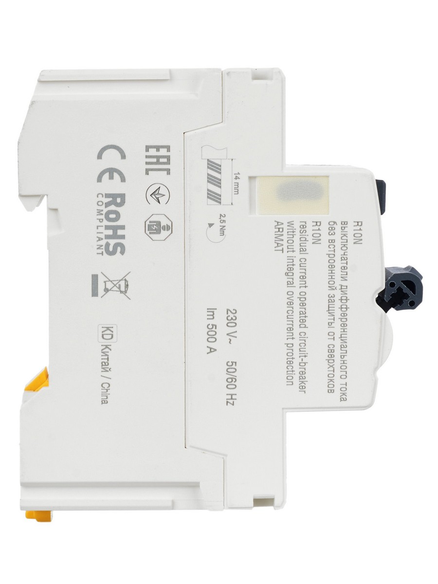 **Выключатель дифференциального тока ARMAT R10N 2P 25А 30мА тип A (артикул: AR-R10N-2-025A030)**