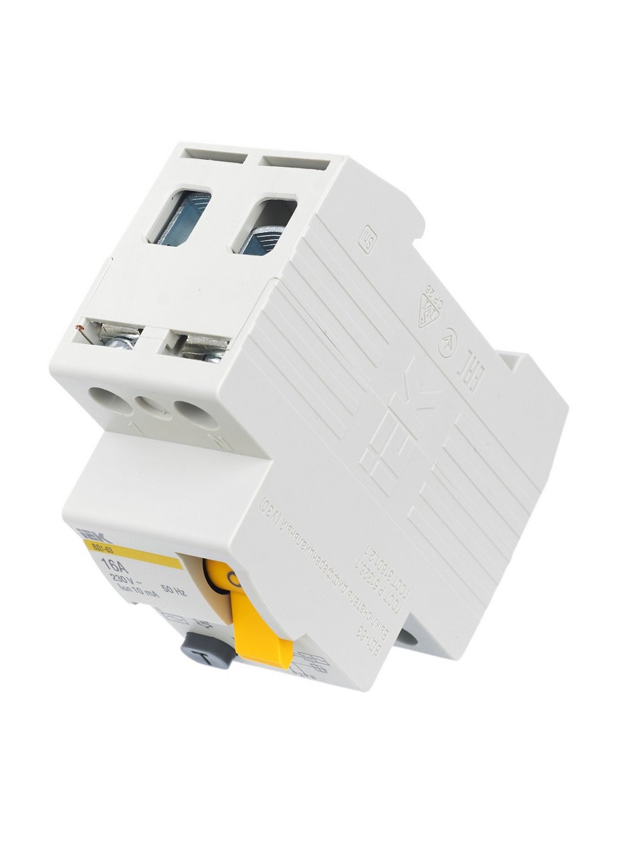 **Выключатель дифференциальный IEK KARAT ВД1-63 (УЗО) 2Р 16А 10мА (артикул: MDV10-2-016-010)**