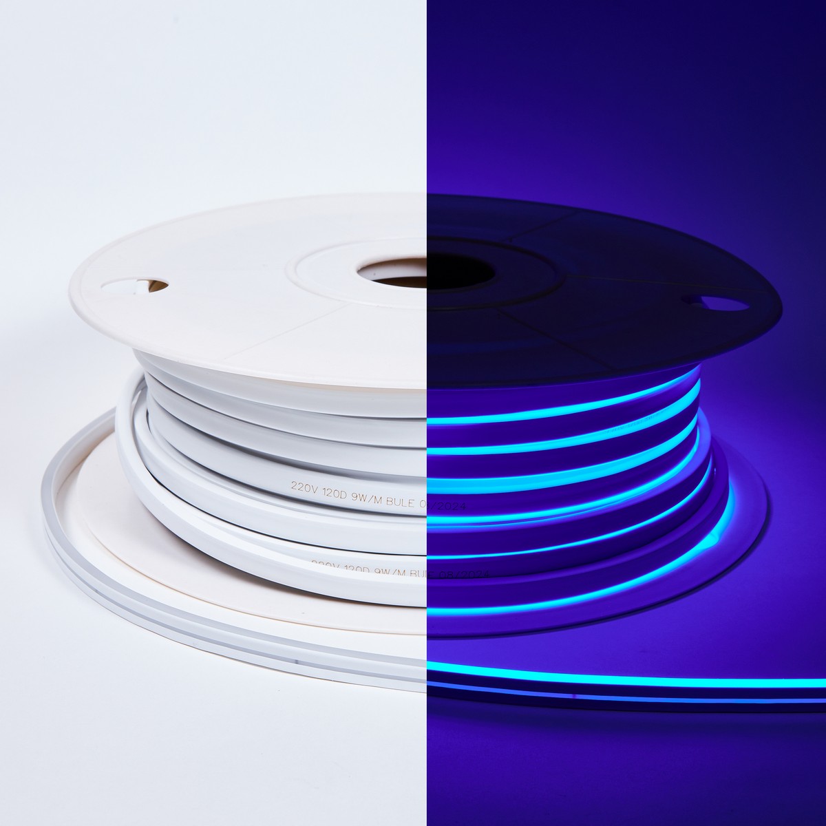 Гибкий неон ELEGANZ 220В 9Вт/м Синий (артикул EL-N220-9B) – идеальное решение для создания эффектной подсветки в интерьере и экстерьере. С шагом резки 10 см, он легко адаптируется под любые дизайнерские проекты, включая освещение потолков, ниш и витрин. Обеспечивает влагозащиту (IP65), что делает его подходящим для ванных комнат, кухонь и уличных конструкций.