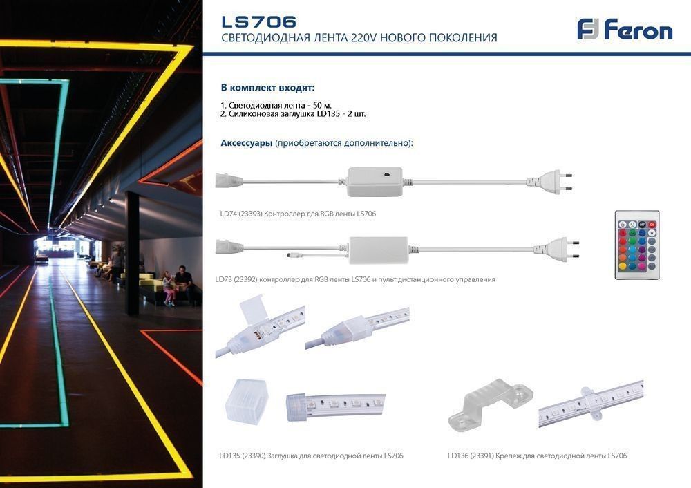 Контроллер Feron LD73 с пультом для светодиодной ленты LS706 RGB AC220V IP44 23392 по цене 878 руб. с фотографией и техническими характеристиками. Для покупки товара нажмите кнопку "Купить" и перейдите в корзину или позвоните по телефону 8 (495) 585 32 60 или 8 (800) 222 23 53.