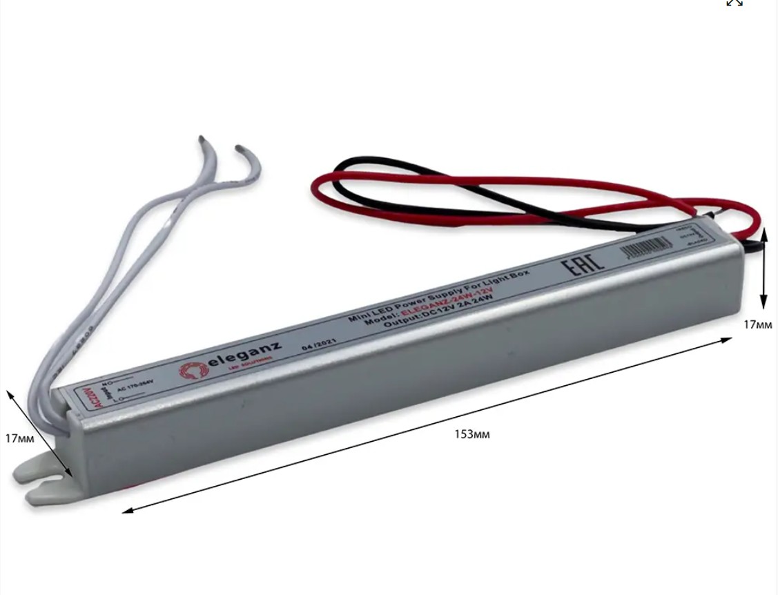 Блок питания для светодиодной ленты Eleganz 12V 24W IP20 - надежный источник питания с компактной формой. Преобразует 220В в 12В, обеспечивая стабильную работу светодиодов. Узкий дизайн позволяет устанавливать его в ограниченных пространствах. Рекомендуется учитывать запас мощности +20% для повышения долговечности. Степень защиты IP20 подходит для использования в помещениях. Производитель - Eleganz.