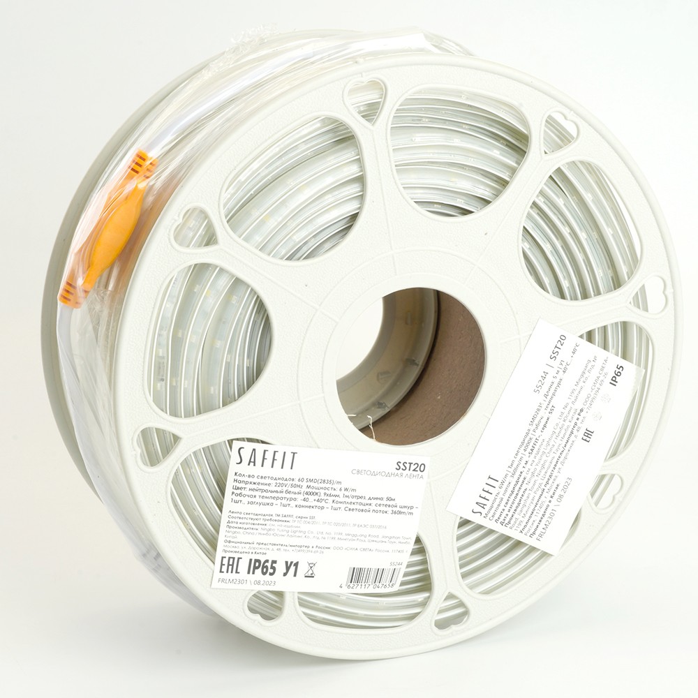 Светодиодная лента SAFFIT SST20 60SMD (2835) 6Вт/м 220V, длина 50м, цвет 4000K, IP65. Идеальна для основного и акцентного освещения. Обладает двойным медным слоем для эффективного теплоотведения и простоты монтажа, что позволяет избежать ошибок при установке. Устойчива к сгибам, легко монтируется, обеспечивает равномерное нанесение клеевого слоя и обладает длительным сроком службы. Мощность 6 Вт/м, 60 диодов на метр. Продается кратно 100 метров.