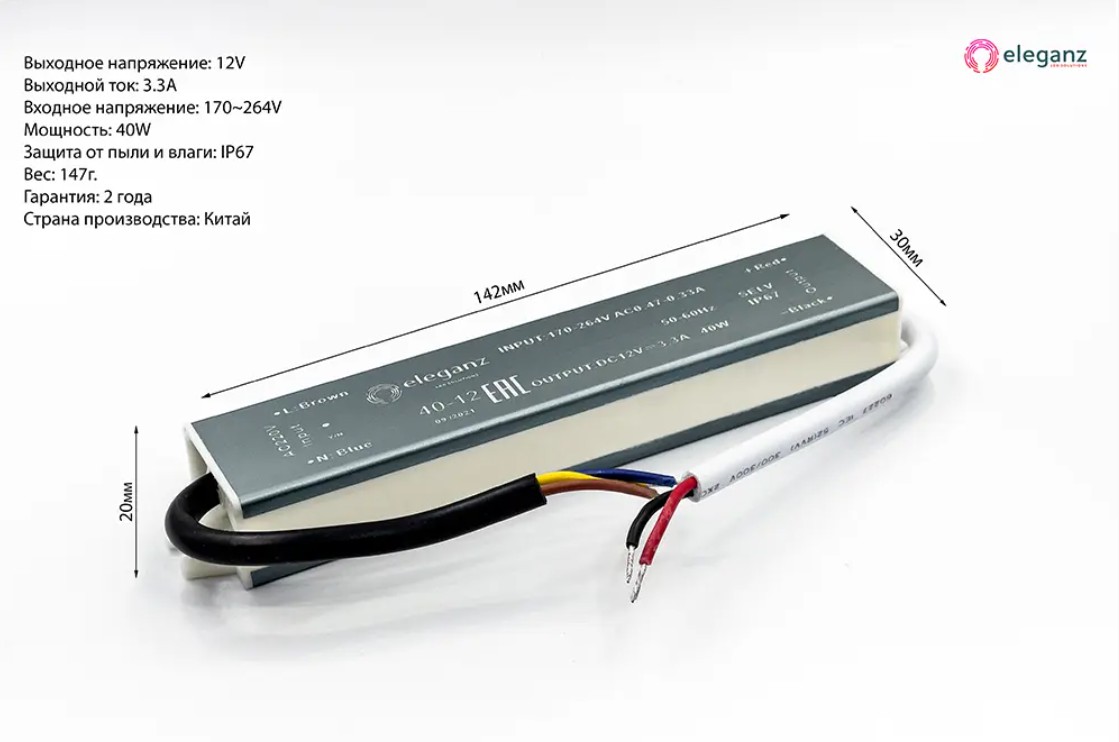 Блок питания Eleganz 12V 75W IP67 предназначен для светодиодных лент и светильников. Он преобразует 220В AC в 12В DC, обеспечивая надежное питание. Корпус из прочного алюминия с защитой IP67 гарантирует защиту от влаги и пыли, что делает его идеальным для уличного использования. Рекомендуется учитывать запас мощности +20% для стабильной работы. Основные характеристики: напряжение 12В, мощность 75Вт, производитель Eleganz.
