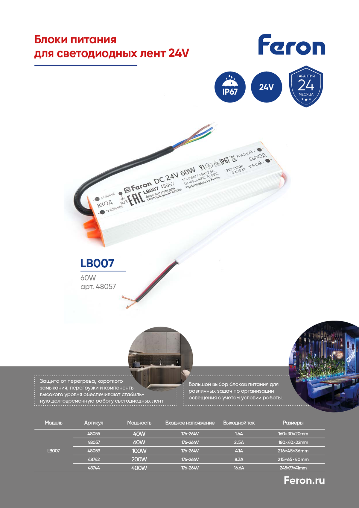 Трансформатор Feron LB007 предназначен для питания светодиодных лент до 400W при напряжении 24V. Обладает степенью защиты IP67, что обеспечивает надежную работу в условиях повышенной влажности и пыли. Идеален для использования как в интерьере, так и на улице. Прост в установке и совместим с любыми светодиодными лентами.