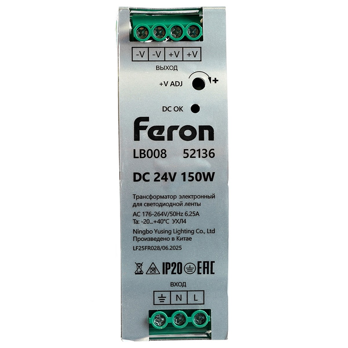 Трансформатор Feron LB008 для светодиодной ленты на DIN-рейку 150W 24V 40*125.5*113мм IP20 52136 по цене 3 242 руб. с фотографией и техническими характеристиками. Для покупки товара нажмите кнопку "Купить" и перейдите в корзину или позвоните по телефону 8 (495) 585 32 60 или 8 (800) 222 23 53.