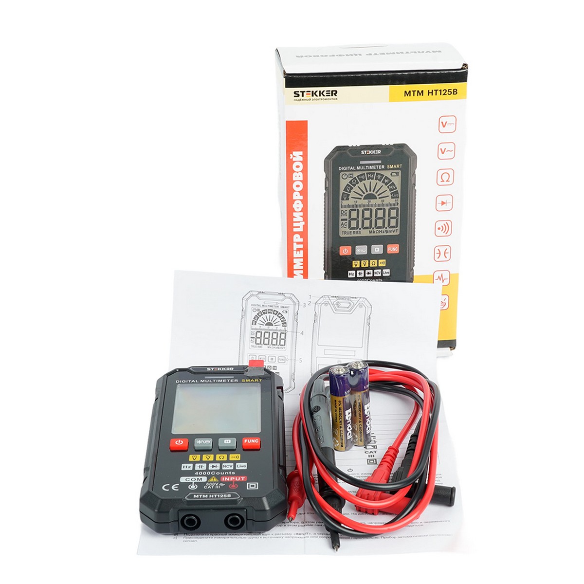 MTM HT125B Мультиметр цифровой, 4000 отсчетов, 2 батареи тип ААА 1,5В, автоматический, черный