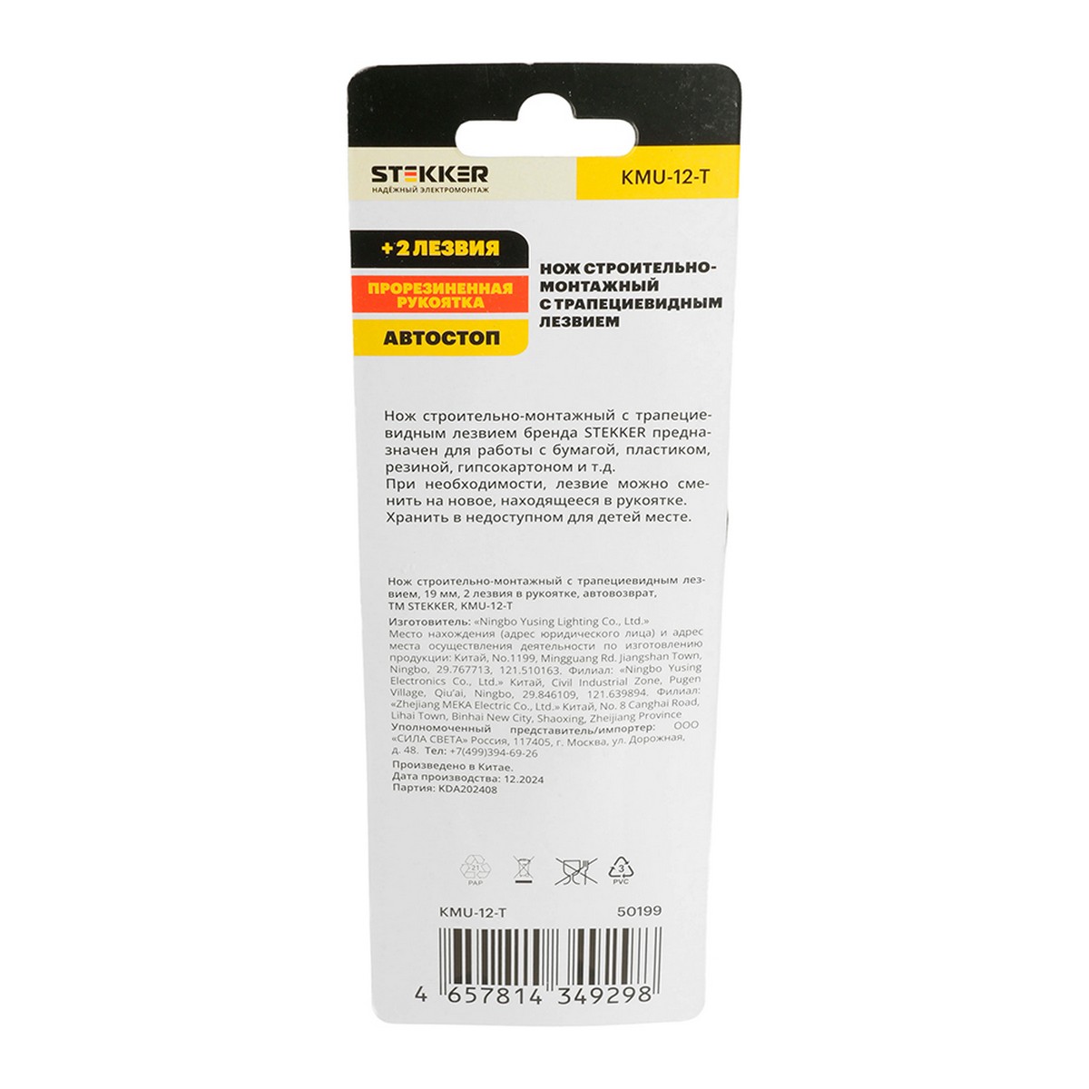 KMU-12-T Нож строительно-монтажный с трапециевидным лезвием, 19 мм, 2 лезвия в рукоятке