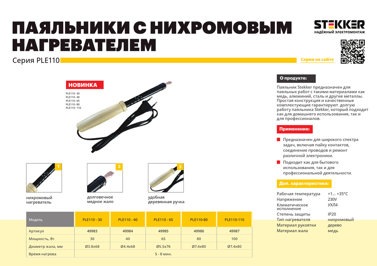 Паяльник с деревянной ручкой 40W STEKKER PLE110-40 49984 по цене 221 руб. с фотографией и техническими характеристиками. Для покупки товара нажмите кнопку "Купить" и перейдите в корзину или позвоните по телефону 8 (495) 585 32 60 или 8 (800) 222 23 53.