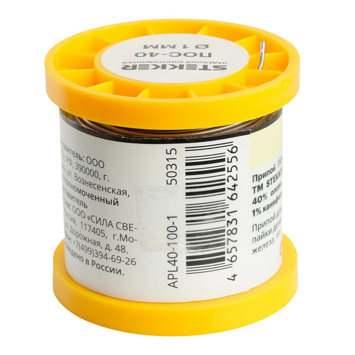Припой STEKKER APL40-100-1 ПОС-40 с канифолью в бобине 100 гр 50315 по цене 585 руб. с фотографией и техническими характеристиками. Для покупки товара нажмите кнопку "Купить" и перейдите в корзину или позвоните по телефону 8 (495) 585 32 60 или 8 (800) 222 23 53.