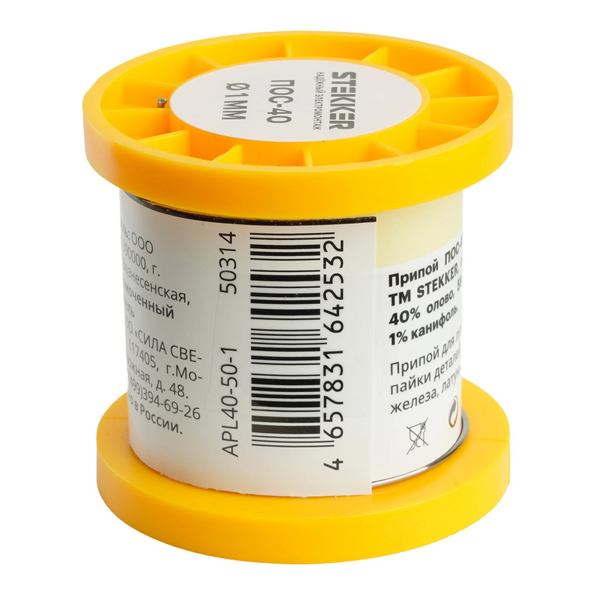 Припой STEKKER APL40-50-1 ПОС-40 с канифолью в бобине 50 гр 50314 по цене 401 руб. с фотографией и техническими характеристиками. Для покупки товара нажмите кнопку "Купить" и перейдите в корзину или позвоните по телефону 8 (495) 585 32 60 или 8 (800) 222 23 53.