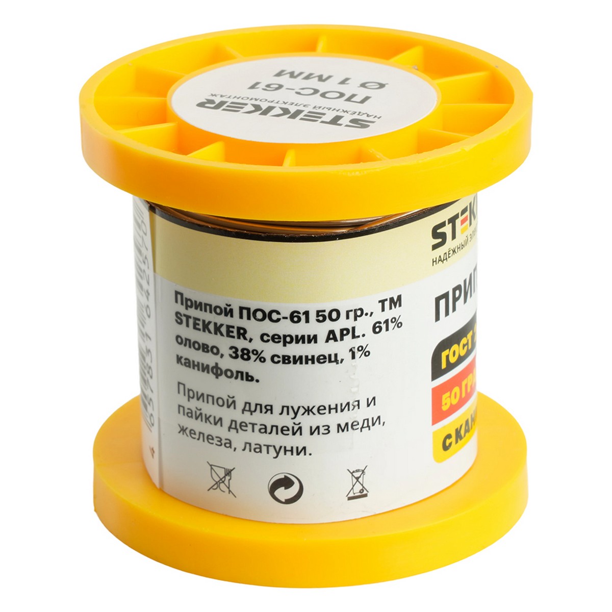 Припой STEKKER APL61-50-1 ПОС-61 с канифолью в бобине 50 гр 50316 по цене 555 руб. с фотографией и техническими характеристиками. Для покупки товара нажмите кнопку "Купить" и перейдите в корзину или позвоните по телефону 8 (495) 585 32 60 или 8 (800) 222 23 53.