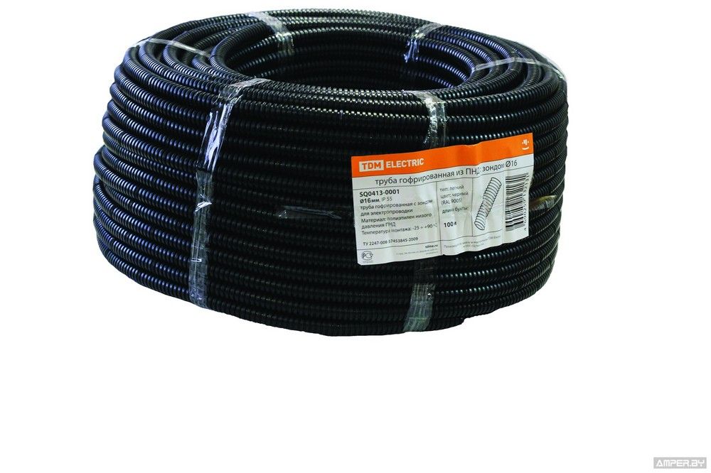 Гофра Ф16 черная с зондом используется для защиты от механических повреждений и дополнительной изоляции проводов и кабелей.