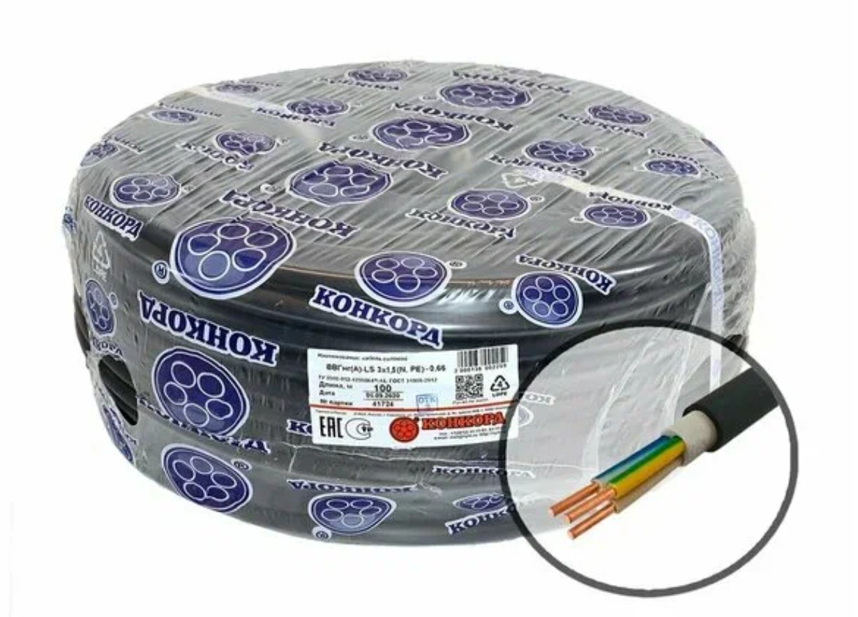 Кабель силовой ВВГ, ППГ, ВБШ жесткий Сечение: 1,5 Количество жил: 3 жилы
