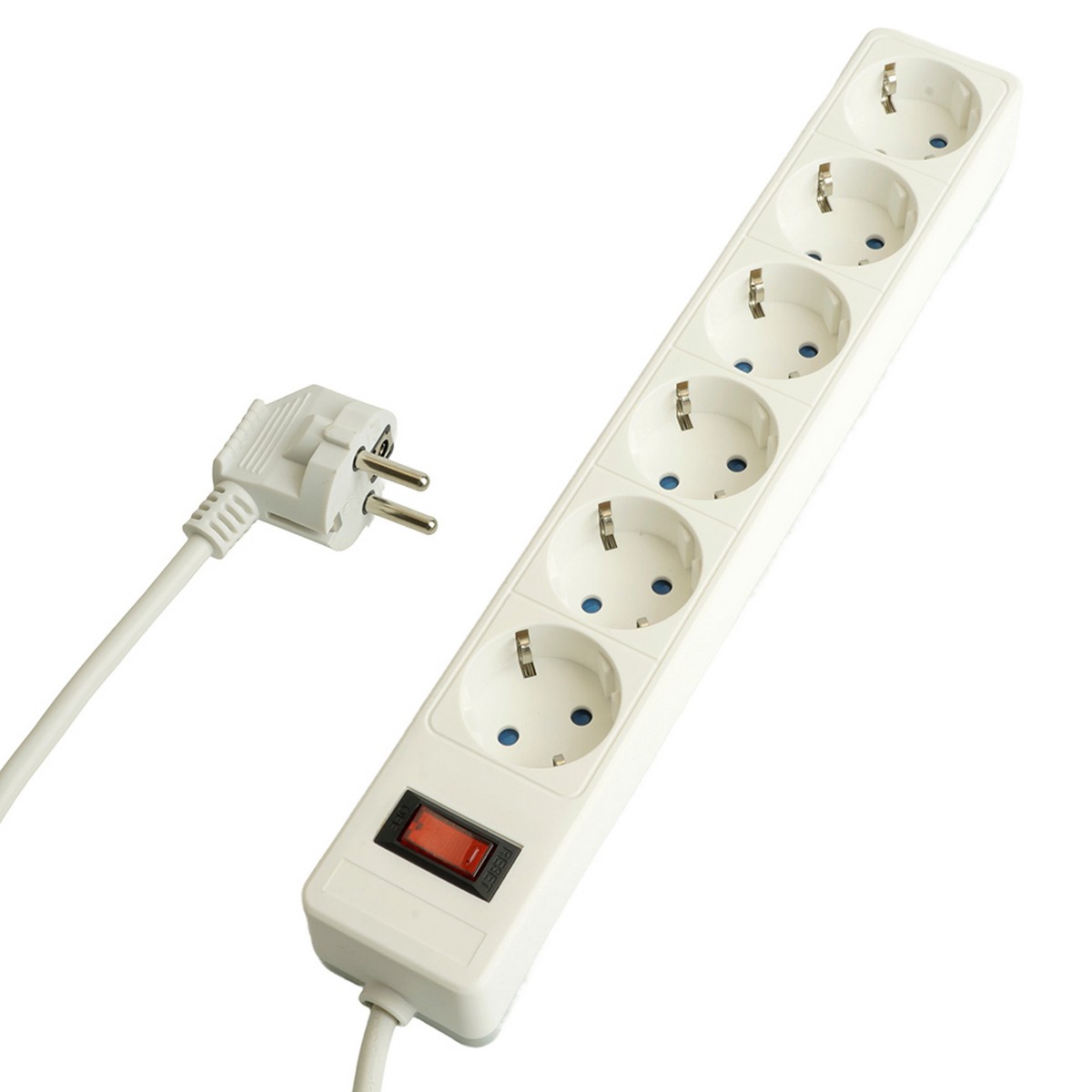 HM20-61-02 Сетевой фильтр 6-местный с/з 3x1мм2, 1,8 м, 230В, 13А, серия Optima, белый