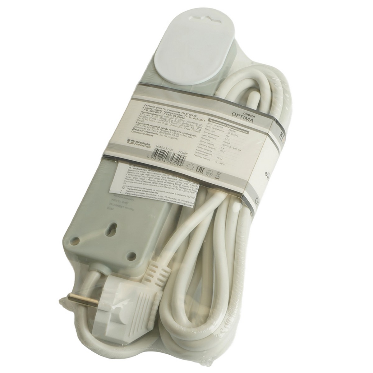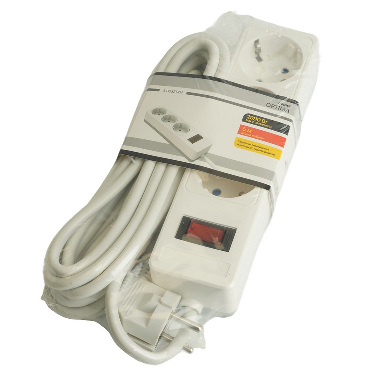 HM20-31-05 Сетевой фильтр 3-местный с/з 3x1мм2, 5 м, 230В, 13А, серия Optima, белый