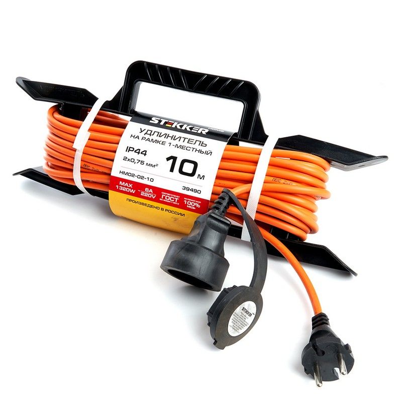 Удлинители STEKKER HM02-02-10, серия Home, цвет оранжевый, длина 10 м, количество розеток 1, сталь, сечение кабеля 0.75 мм2, тип кабеля ПВС, материал кабеля медь, ток 6А, напряжение 220В, максимальная нагрузка 1320Вт, тип вилки - прямая. Диапазон рабочих температур +1..+35°C, степень защиты IP44, класс защиты от поражения эл. током 2, размеры изделия 398*165*155. Гарантия 1 год.