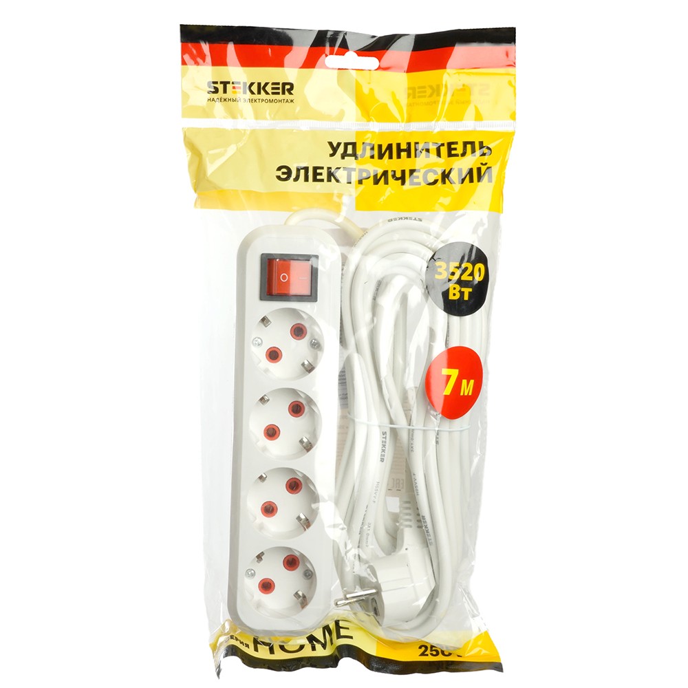 Удлинитель STEKKER четырехместный с/з с выключ. HM07-41-07 7м Home (У16А-003) белый 49361 по цене 695 руб. с фотографией и техническими характеристиками. Для покупки товара нажмите кнопку "Купить" и перейдите в корзину или позвоните по телефону 8 (495) 585 32 60 или 8 (800) 222 23 53.