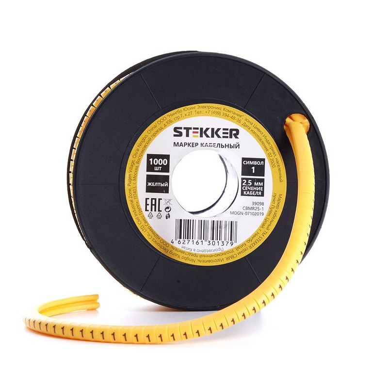 Кабель маркер на бобине электромонтажный STEKKER CBMR25-1, , желтый, материал - ПВХ, размер 98*98мм, максимальный диаметр пучка - мм, нагрузка - кг, диапазон рабочих температур -10°C - +40°C, рекомендуемая температура хранениня