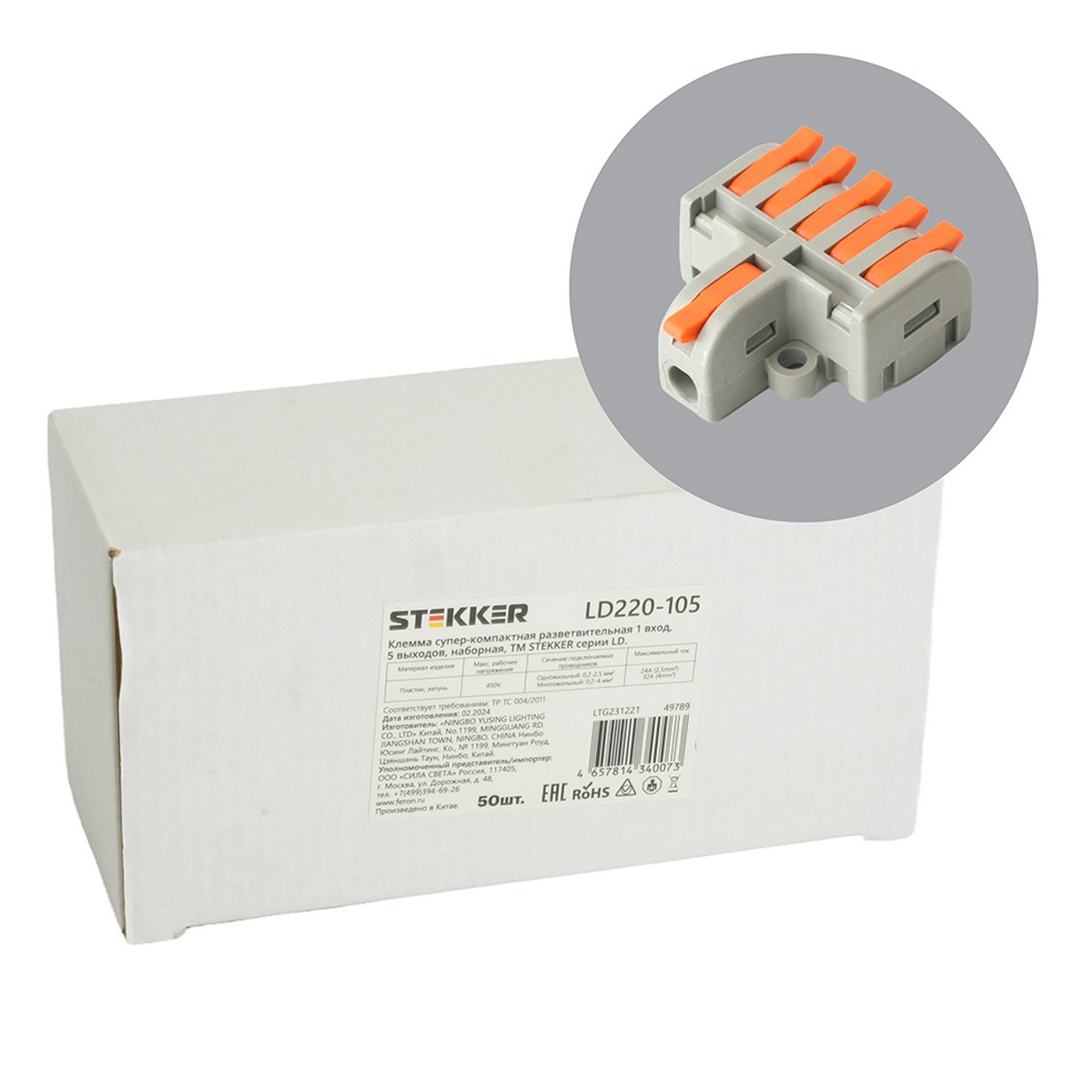 Клемма STEKKER LD220-105 супер-компактная разветвительная 1 вход 5 выходов 49789 по цене 48 руб. с фотографией и техническими характеристиками. Для покупки товара нажмите кнопку "Купить" и перейдите в корзину или позвоните по телефону 8 (495) 585 32 60 или 8 (800) 222 23 53.