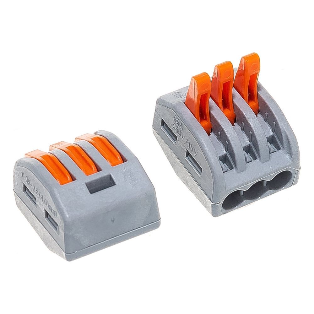 Клемма пружинная универсальная STEKKER LD222-413, 3-проводная 0,08 - 2,5/4 мм2, 400В, 24 A, 32 A, без пасты, материал изделия пластик, латунь. Тип провода одножильный/многожильный, материал провода медь, температура окружающей среды -20...+40°C