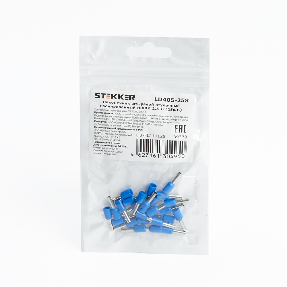 Наконечник Штыревой Втулочный Изолированный STEKKER; 2,5 - 8 мм-; , латунь, полипропилен (PP), синий