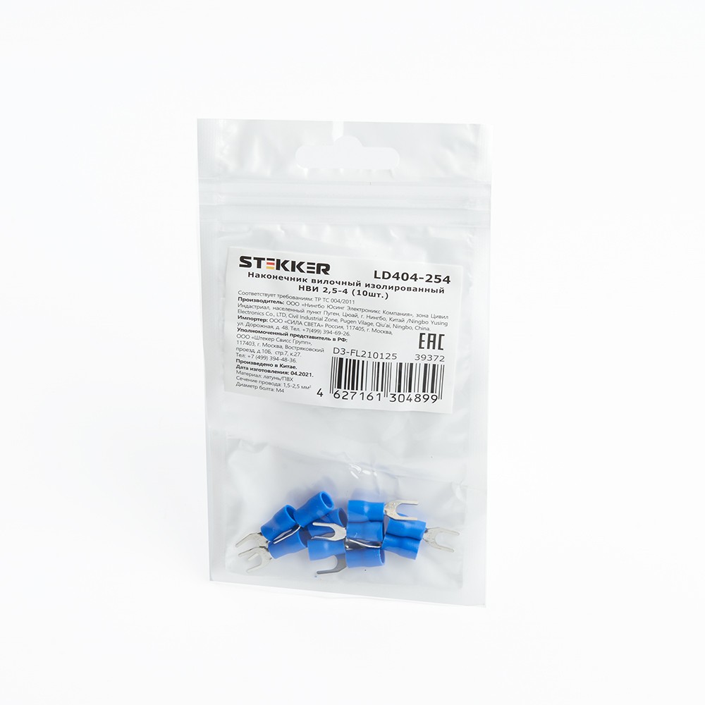 Наконечник Вилочный Изолированный STEKKER; М4 1,5-2,5 - 0,6 мм; , латунь, поливинилхлорид (PVC), синий