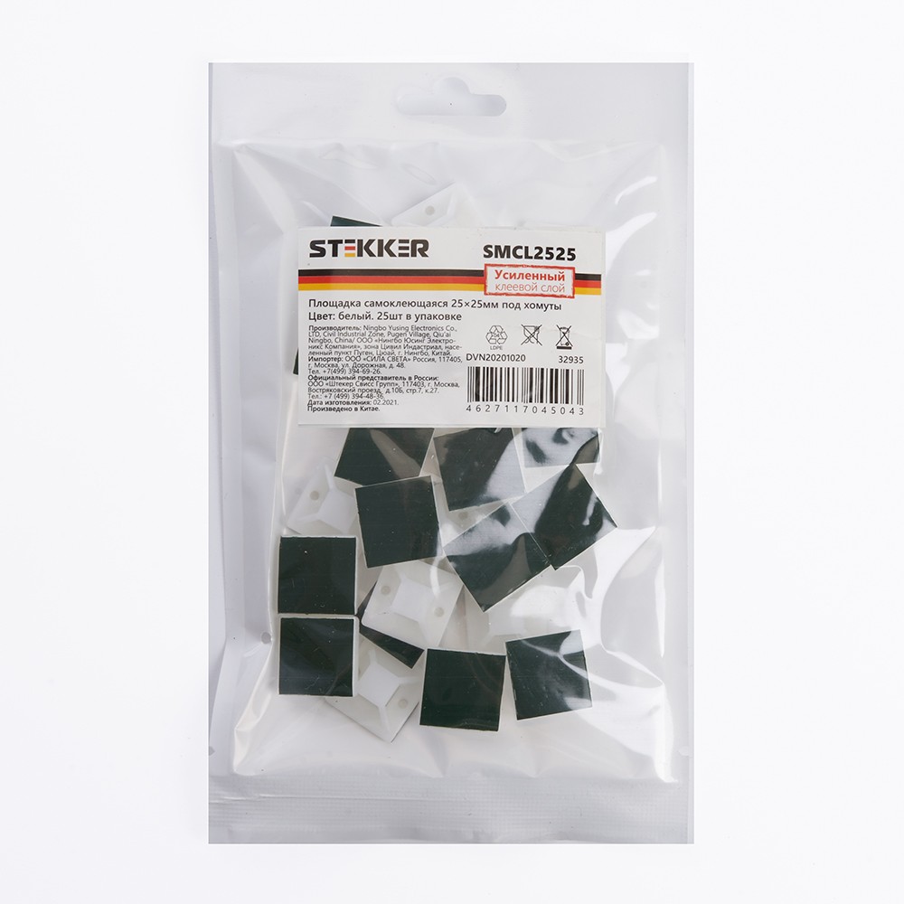 Площадка под хомут STEKKER SMCL2525 самоклеющаяся, цвет белый, размер 25*25мм., материал: нейлон . Максимальный размер хомута: 4,7мм., 25 шт в упаковке.