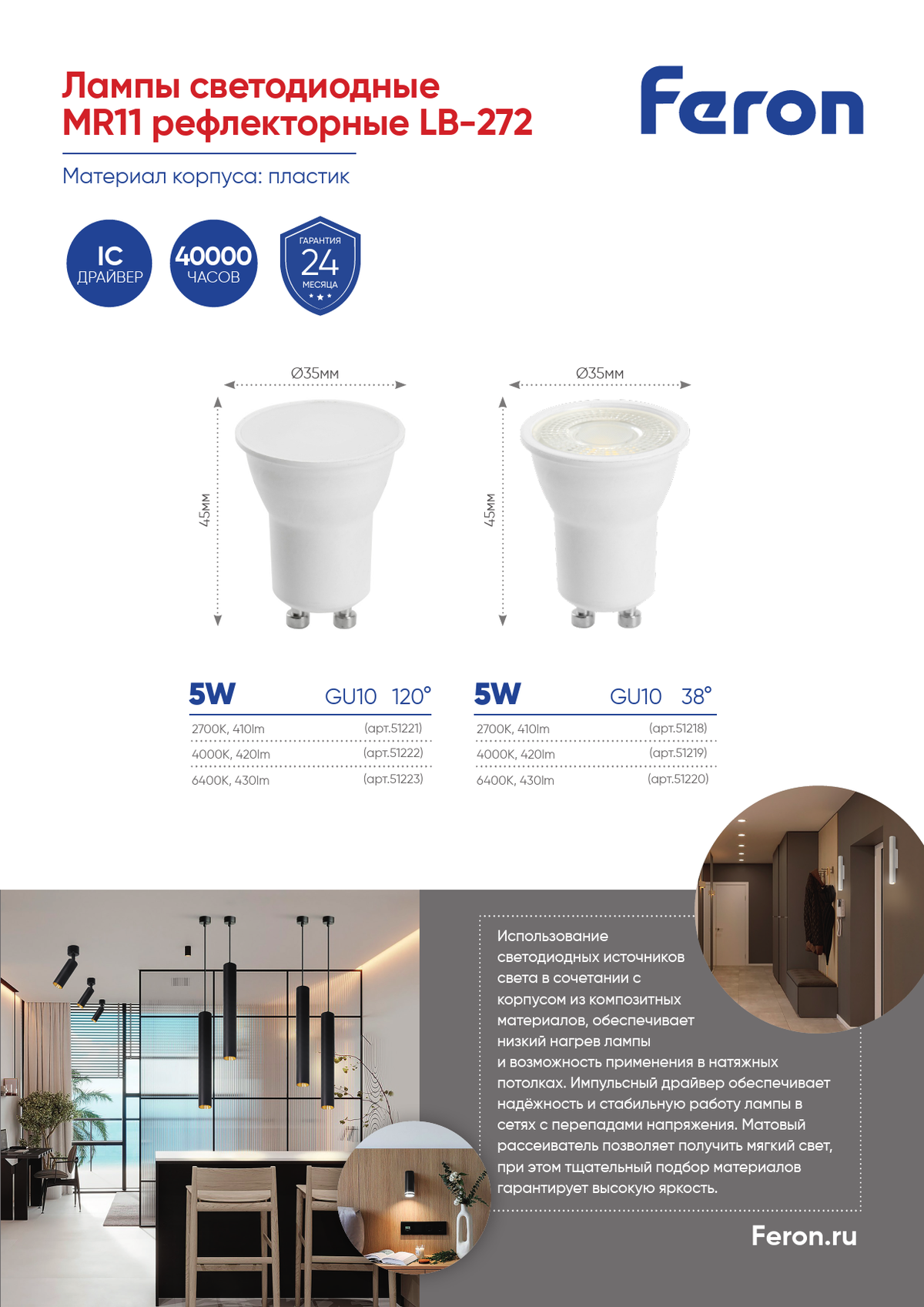 Лампа светодиодная Feron LB-272 MR11 GU10 5W 175-265V 6400K 51220 по цене 114 руб. с фотографией и техническими характеристиками. Для покупки товара нажмите кнопку "Купить" и перейдите в корзину или позвоните по телефону 8 (495) 585 32 60 или 8 (800) 222 23 53.
