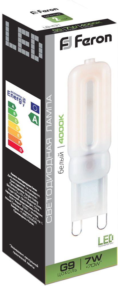 Лампа светодиодная Feron LB-431 G9 7W 4000K 230V 25756 по цене 142 руб. с фотографией и техническими характеристиками. Для покупки товара нажмите кнопку "Купить" и перейдите в корзину или позвоните по телефону 8 (495) 585 32 60 или 8 (800) 222 23 53.