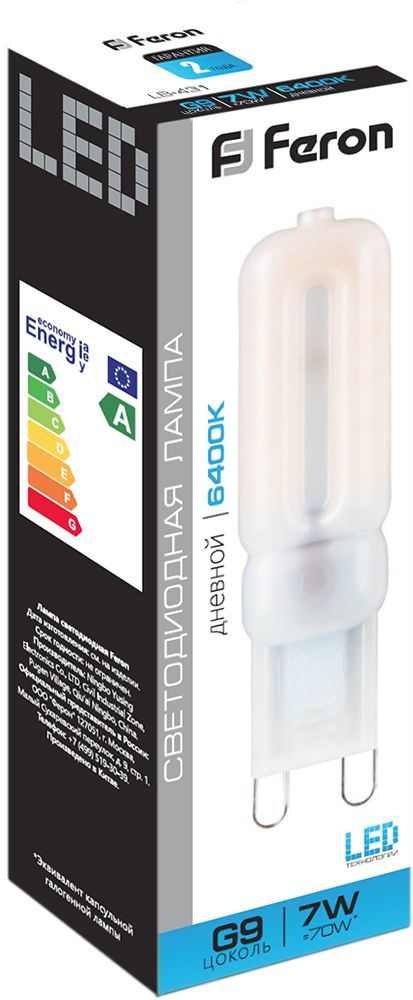 Лампа светодиодная Feron LB-431 G9 7W 6400K 230V 25757 по цене 142 руб. с фотографией и техническими характеристиками. Для покупки товара нажмите кнопку "Купить" и перейдите в корзину или позвоните по телефону 8 (495) 585 32 60 или 8 (800) 222 23 53.