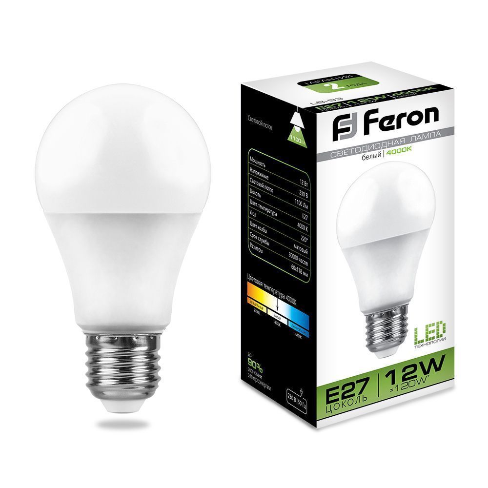Лампа светодиодная Feron LB-93 E27 12W 4000K — идеальное решение для создания комфортного освещения в любых помещениях. Обладая мощностью 12 Вт и световым потоком 1100 Лм, она обеспечивает яркий, равномерный свет с углом рассеивания 220°, что делает её отличным выбором для жилых комнат, офисов и коммерческих пространств. Цветовая температура 4000K создает нейтральное освещение, способствующее концентрации и повышению работоспособности.
