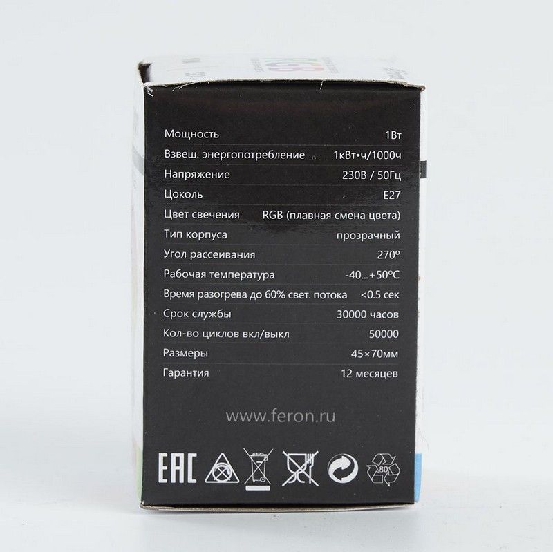 Лампа светодиодная Feron LB-37 Шарик прозрачный E27 1W RGB плавная смена цвета 38132 по цене 60 руб. с фотографией и техническими характеристиками. Для покупки товара нажмите кнопку "Купить" и перейдите в корзину или позвоните по телефону 8 (495) 585 32 60 или 8 (800) 222 23 53.