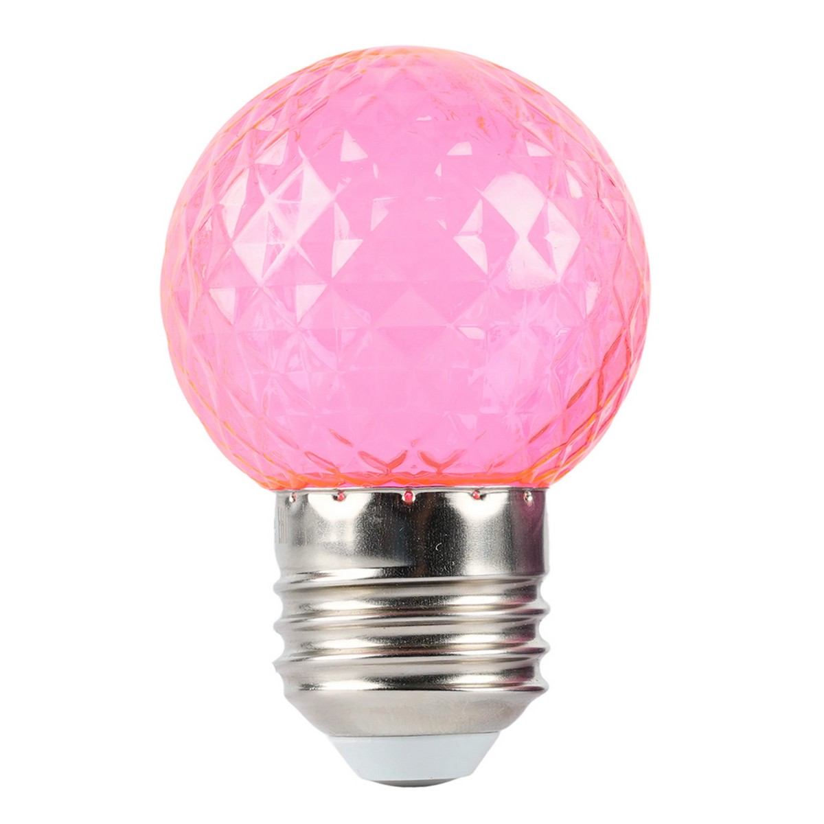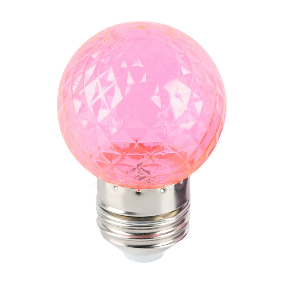 Лампа светодиодная FERON LB-385, G45 (шар), 1W 230V E27 (розовый), рассеиватель прозрачный розовый, угол рассеивания 270°, корпус пластик, 68*45мм