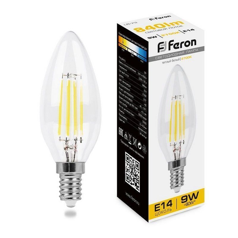 Лампа светодиодная Feron LB-73 - это стильное решение для освещения вашего интерьера. С мощностью 9W и цоколем E14, она обеспечивает теплый свет с цветовой температурой 2700K, создавая уютную атмосферу. Прозрачный рассеиватель обеспечивает яркость в 840Lm и широкий угол рассеивания 270°, идеально подходя для различных помещений. Компактные размеры 100*35мм делают её универсальной для использования в настенных светильниках и люстрах. Энергоэффективность и долговечность делают эту лампу оптимальным выбором для вашего дома.