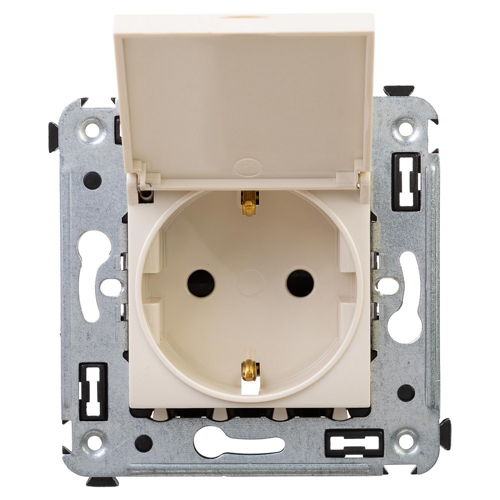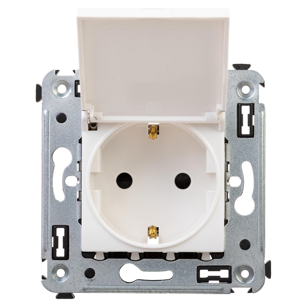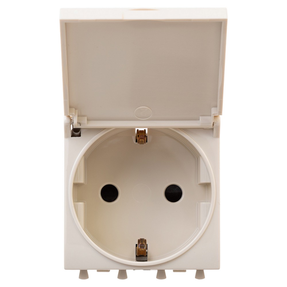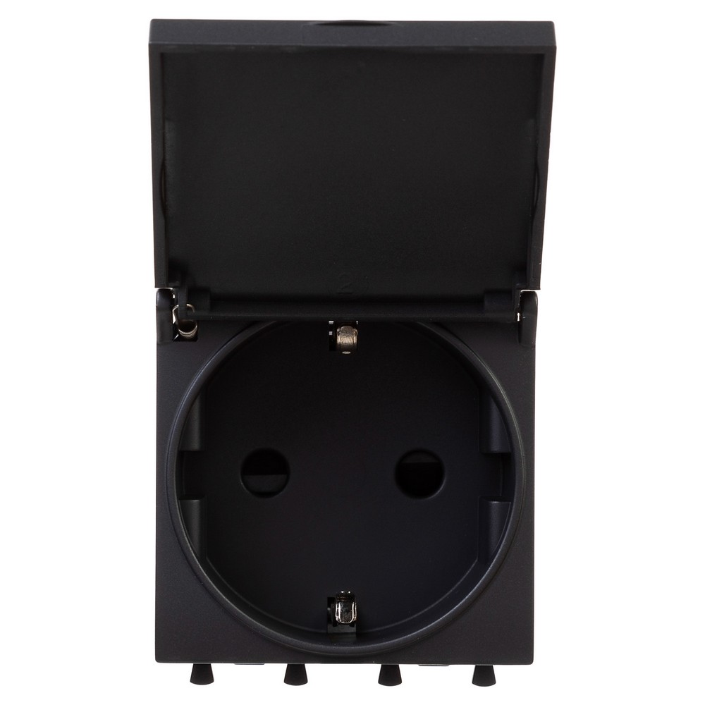 Устройство занимает два модуля и предназначено для подключения бытовых приборов или оргтехники с номинальным напряжением 230 В и током 16 А. Розетка монтируется в кабель-каналы, напольные башенки или лючки, что обеспечивает удобство использования и модульный подход к организации пространства. Система обеспечивает демонстрацию индивидуального стиля и отвечает требованиям современного потребителя, делая ее идеальным выбором для реализации электрических решений в любом интерьере.