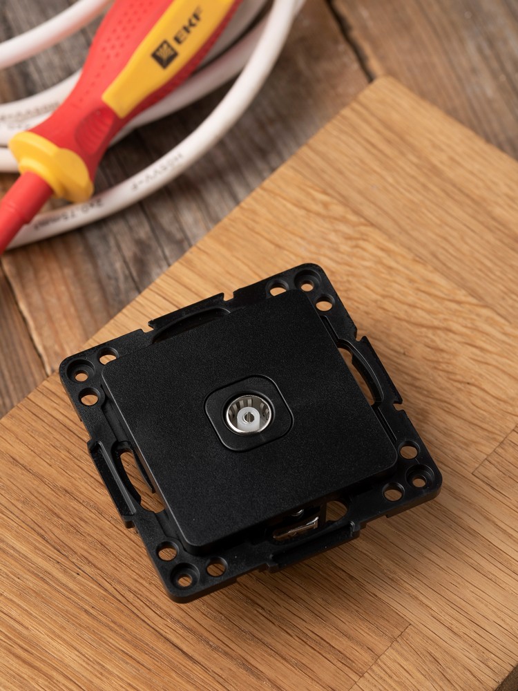 Розетка TV EKF PROxima Стокгольм в черном исполнении – это надежное и эстетичное решение для подключения телевизоров и аудиовизуальной техники. С импедансом 75 Ом и частотным диапазоном от 5 до 862 МГц, она обеспечивает высококачественную передачу сигнала, минимизируя потери и помехи. Дизайн в черном цвете гармонично вписывается в любой интерьер, придавая ему современный вид. Установка розетки проста и удобна, что делает её идеальным выбором как для домашних, так и для профессиональных условий. Продукт от проверенного производителя EKF гарантирует долговечность и стабильную работу, обеспечивая пользователю комфорт и надежность в использовании.