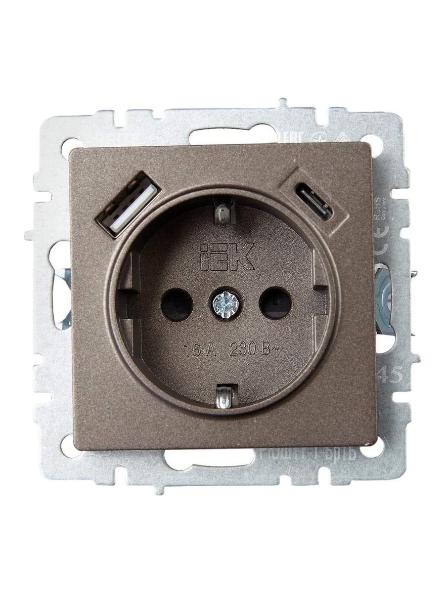 Розетка IEK BRITE с с/з и шторками 16А с USB A+C 18Вт РЮш11-1-БрТБ бронза BR-R14-16-U22-018-K45 по цене 4 112 руб. с фотографией и техническими характеристиками. Для покупки товара нажмите кнопку "Купить" и перейдите в корзину или позвоните по телефону 8 (495) 585 32 60 или 8 (800) 222 23 53.