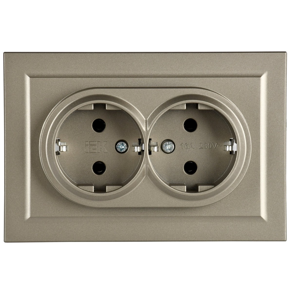 Розетка IEK BRITE 2-ая с/з без шторок 16А в сборе РС12-3-БрШ шампань BR-R21-16-K37-F по цене 342 руб. с фотографией и техническими характеристиками. Для покупки товара нажмите кнопку "Купить" и перейдите в корзину или позвоните по телефону 8 (495) 585 32 60 или 8 (800) 222 23 53.
